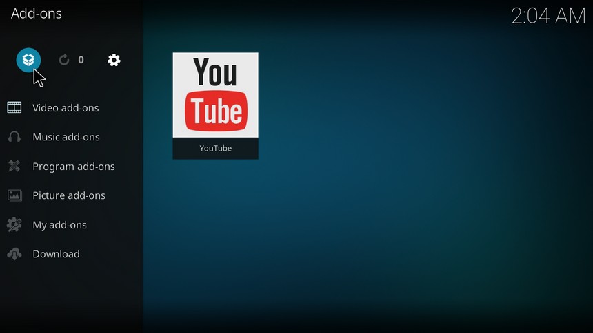 - Seguidamente, haz clic en el icono con una caja abierta de la parte superior izquierda de al pantalla para acceder al panel de gestión de addons.
