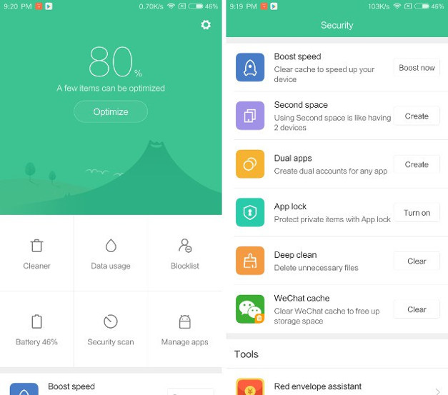 La aplicación de seguridad presente en la MIUI siempre ha sido una de las cosas preferidas por los usuarios de MIUI. Con la ROM MIUI 9, la aplicación de seguridad es aún mejor. Ahora podrás realizar muchas más acciones desde la página principal de la aplicación.