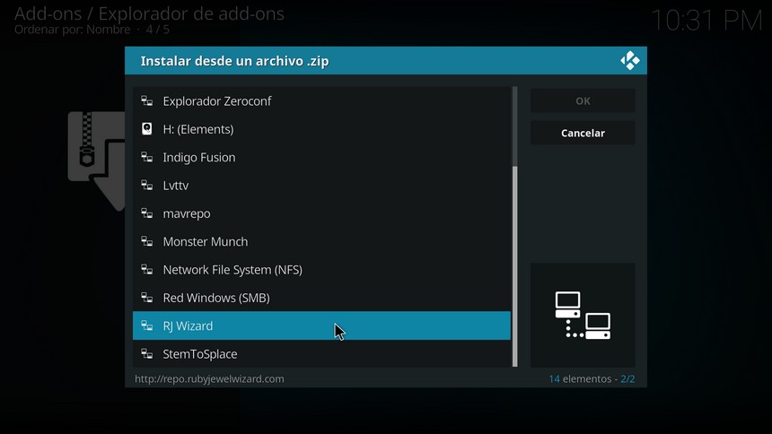- Tras instalar el repositorio, ya puedes instalar el addon. Para instalar A Pirate´s Life for Me debes acceder al explorador de addons y luego hacer clic en la opción para instalar desde un repositorio.