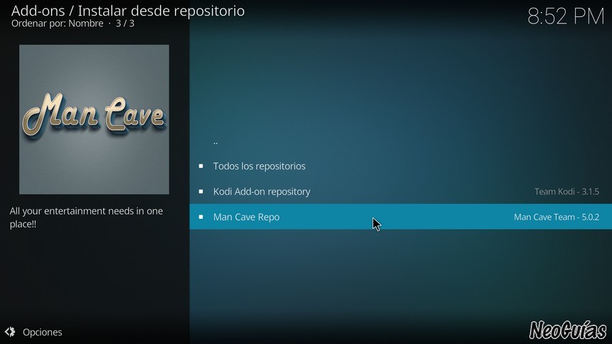 - Haz clic en el archivo que tiene un nombre similar a repository.mancaverepo-x.x.x.zip para así instalar el repositorio. El número de versión del repositorio variará con cada nueva versión.