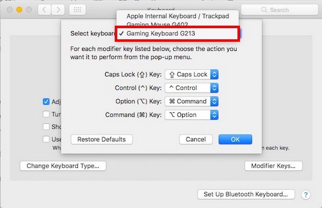 Estas modificaciones nos permitirán asignar la función «Opción» a la tecla de Windows, no porque tenga una relación directa o que por defecto nos permita hacer uso de esta función, sino porque la tecla suele ubicarse donde normalmente se ubica la tecla «Opción» en un teclado de Mac. La tecla Alt en nuestro teclado de Windows, se comportará como la tecla Comando, logrando de esa manera que el usuario de Mac pueda utilizar con fluidez un teclado de Windows en una Mac sin necesidad de tener que adaptarse a la ubicación de las teclas.
