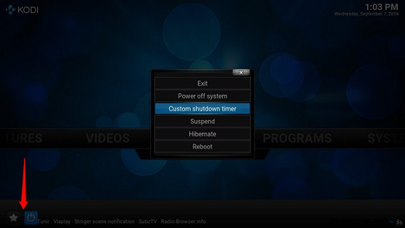 En la esquina inferior izquierda de la página principal, encontrarás el botón de favoritos, que muestra los complementos que tienes y tus favoritos, que son complementos o archivos que has agregado a favoritos. Además, encontrarás un botón de apagado que te permite salir de Kodi, apagar el sistema, reiniciarlo o ponerlo en suspensión. Incluso puedes configurar un temporizador de apagado personalizado.